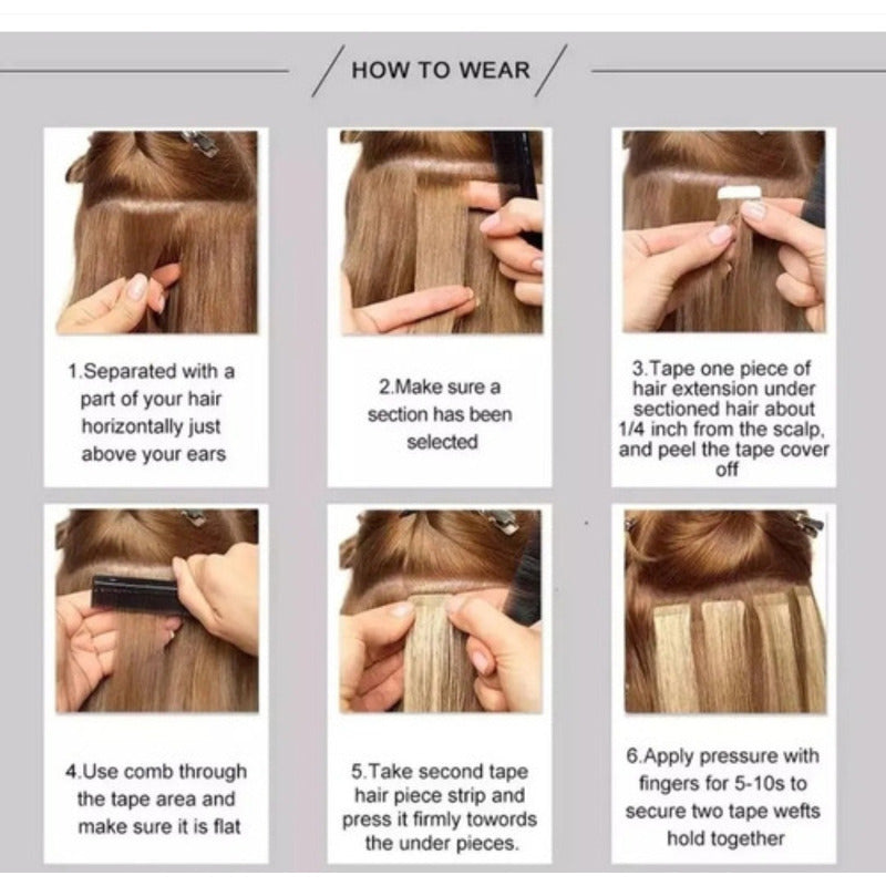 Cabello Natural 100% Humano 60cm Cintas Adhesivas, 20uds.